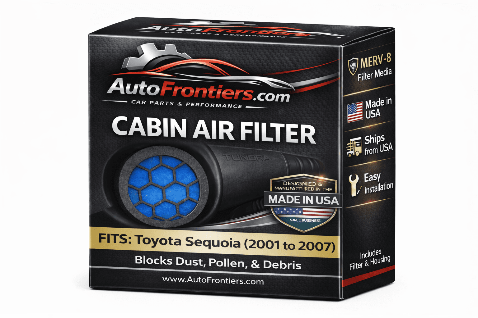 Add modern cabin air filtration to your 1st Generation Toyota Sequoia (2001–2007) with this complete Cabin Air Filter Kit, which includes both a vehicle-specific filter housing and MERV-8 filter media. Designed for Sequoias that did not come equipped with a factory cabin filter, this system helps reduce dust, pollen, and road debris entering the cabin.